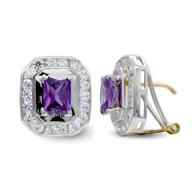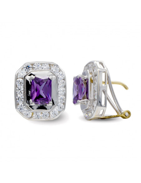 18K PENDIENTES ORO BICOLOR AMATISTA 7X5 MM OMEGA