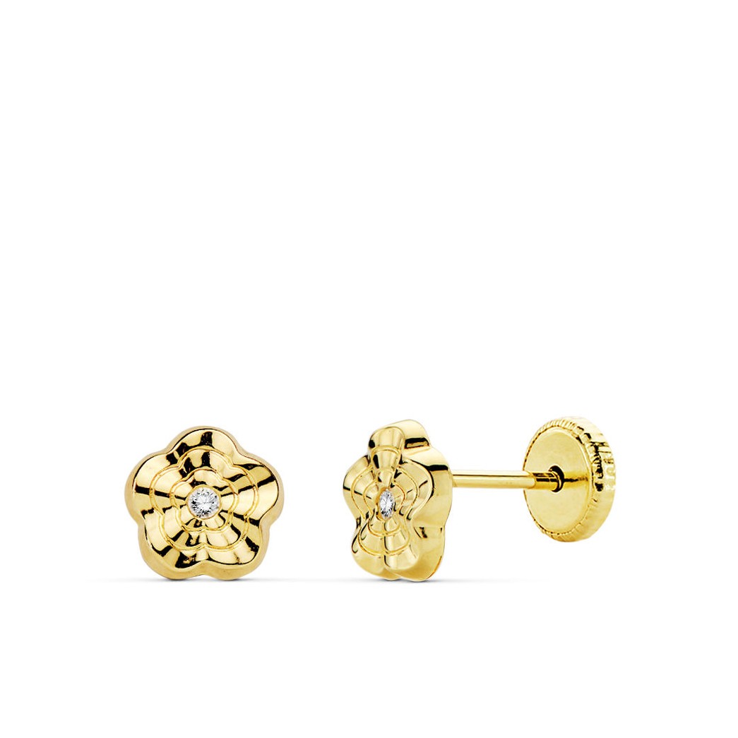 PENDIENTES ORO AMARILLO FLOR ONDAS 6X6 MM.
