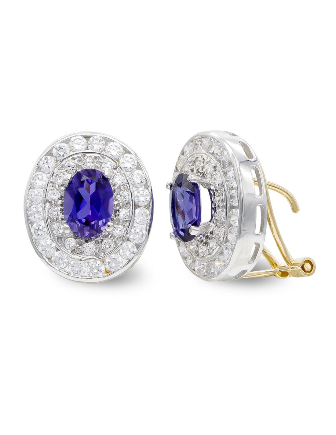 18K PENDIENTES ORO BICOLOR AMATISTA Y CIRCONITAS