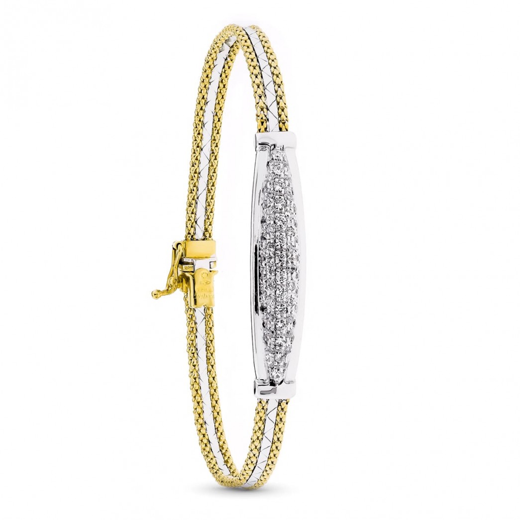 18K PULSERA ORO BICOLOR SEMIRIGIDA CON CIRCONITAS