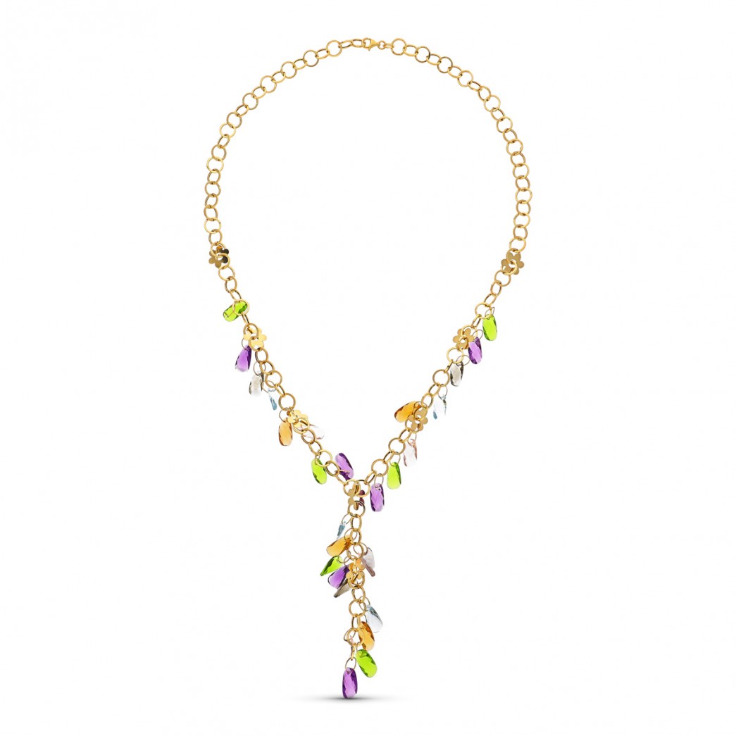 18K GARGANTILA ORO AMARILLO FLORES Y PIEDRAS COLORES