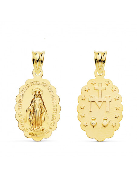 18K MEDALLA VIRGEN DE LA MILAGROSA OVAL MATIZADA 20X15 MM