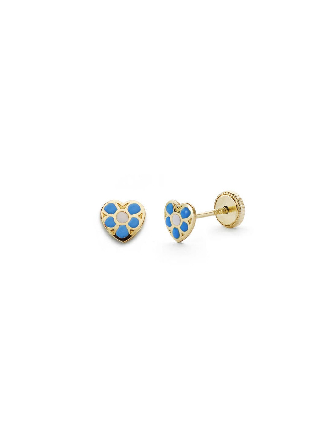 PENDIENTES ORO AMARILLO CORAZON AZUL. 5 X 5 MM.