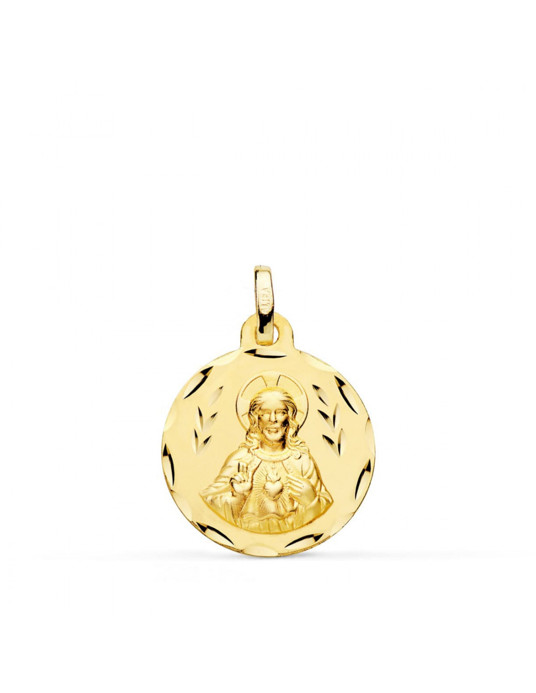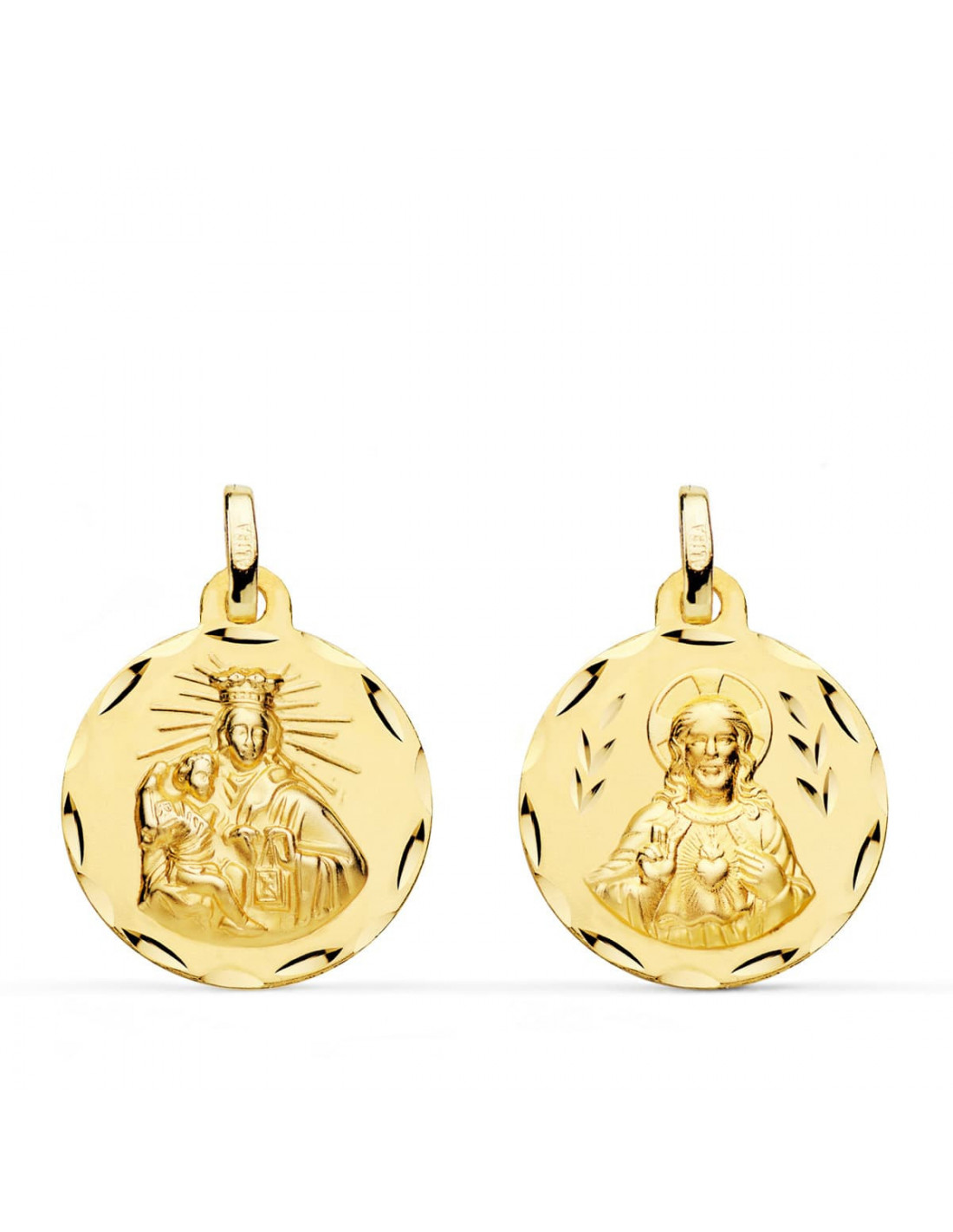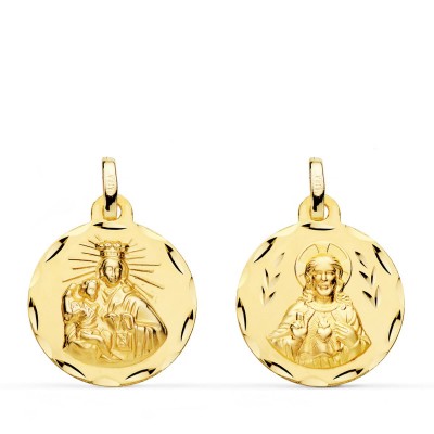 18K ESCAPULARIO CORAZON DE JESUS Y VIRGEN DEL CARMEN TALLADO 18 MM