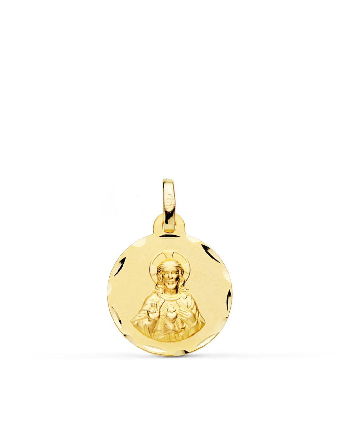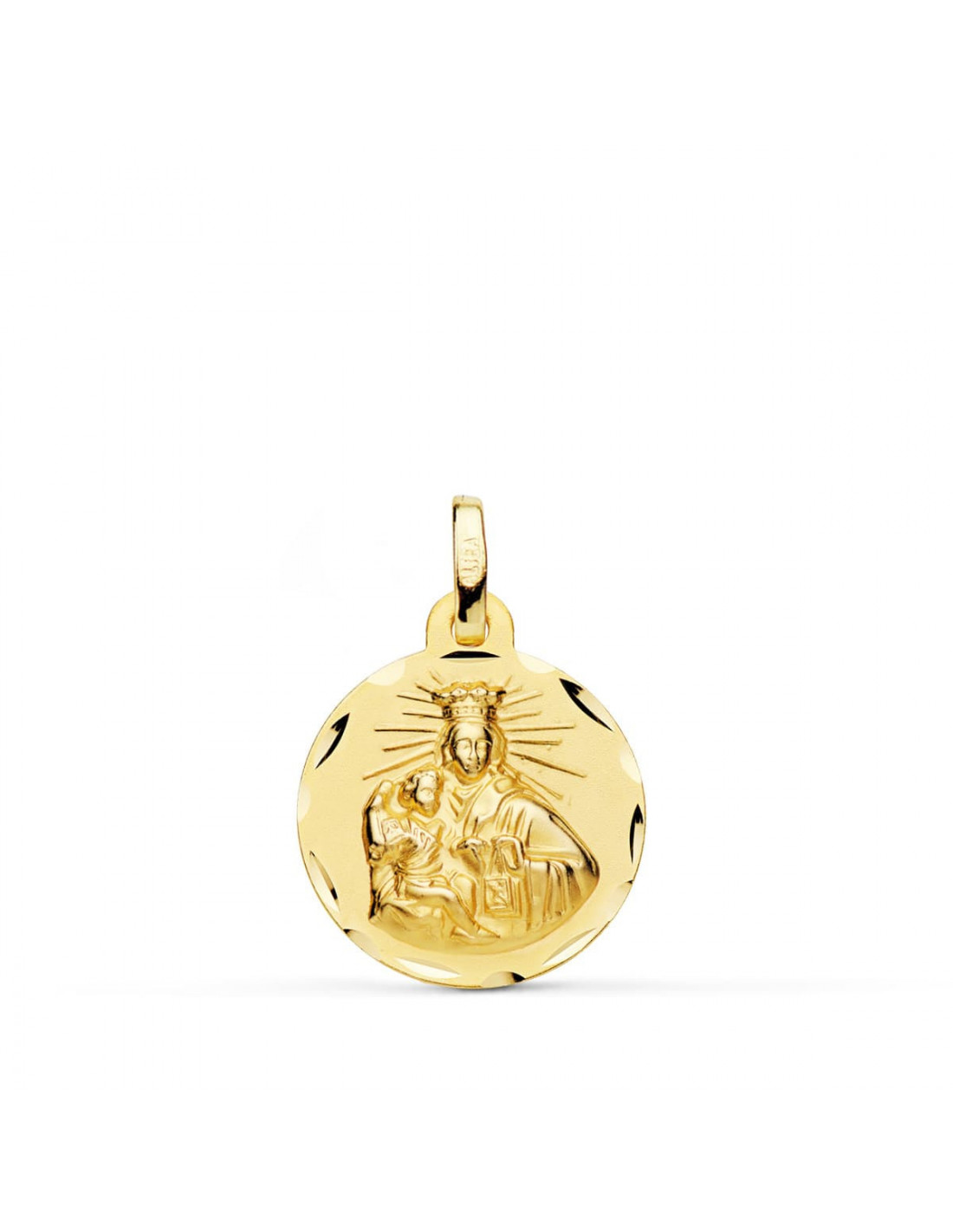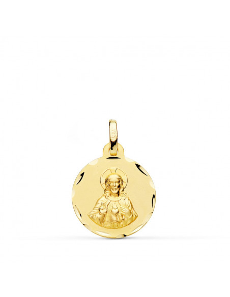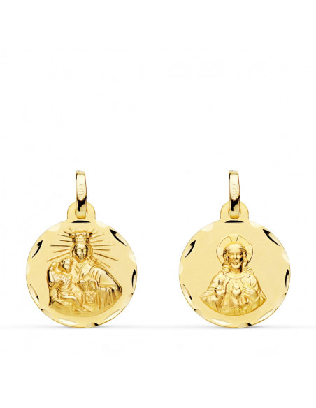 18K ESCAPULARIO CORAZON DE JESUS Y VIRGEN DEL CARMEN TALLADO 16 MM