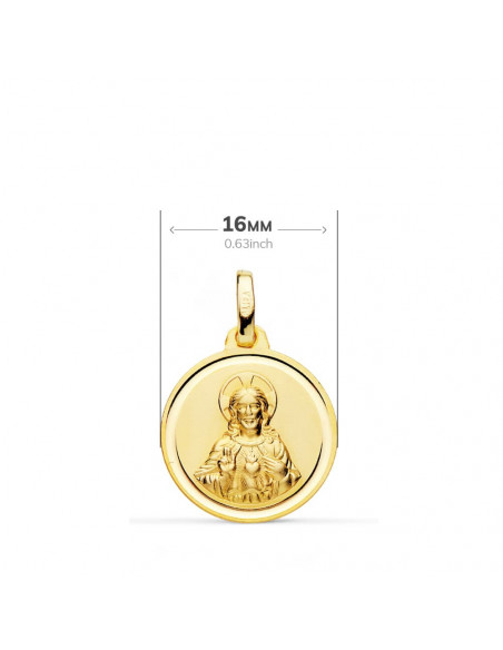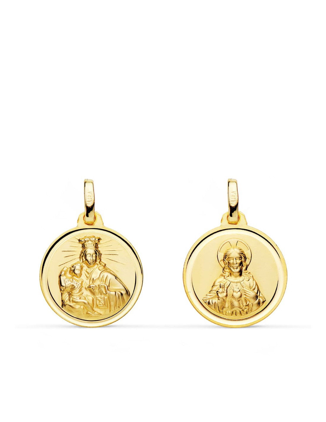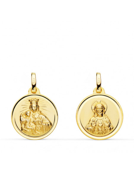 18K ESCAPULARIO VIRGEN CARMEN CORAZON JESUS 16 MM