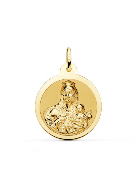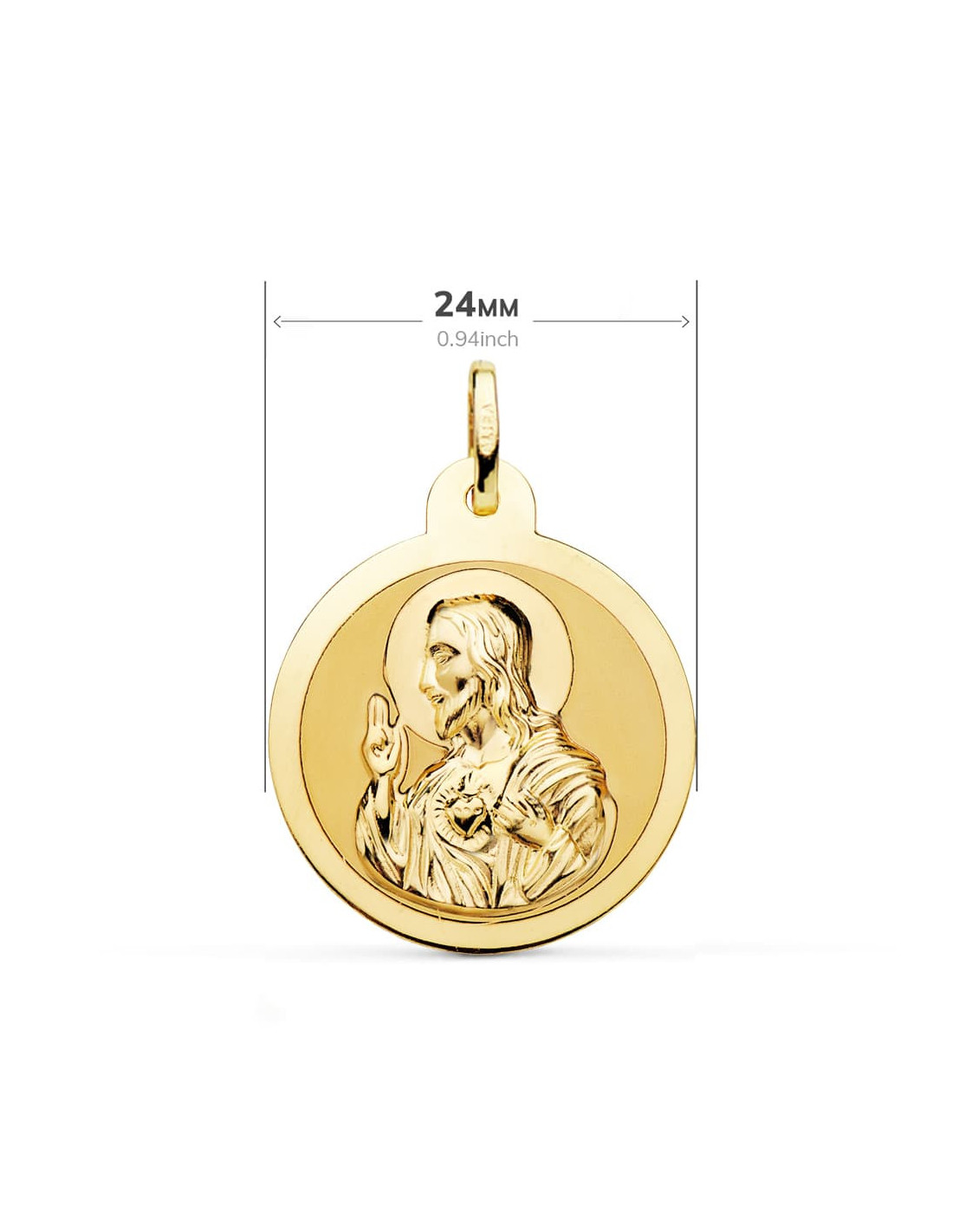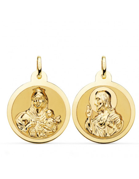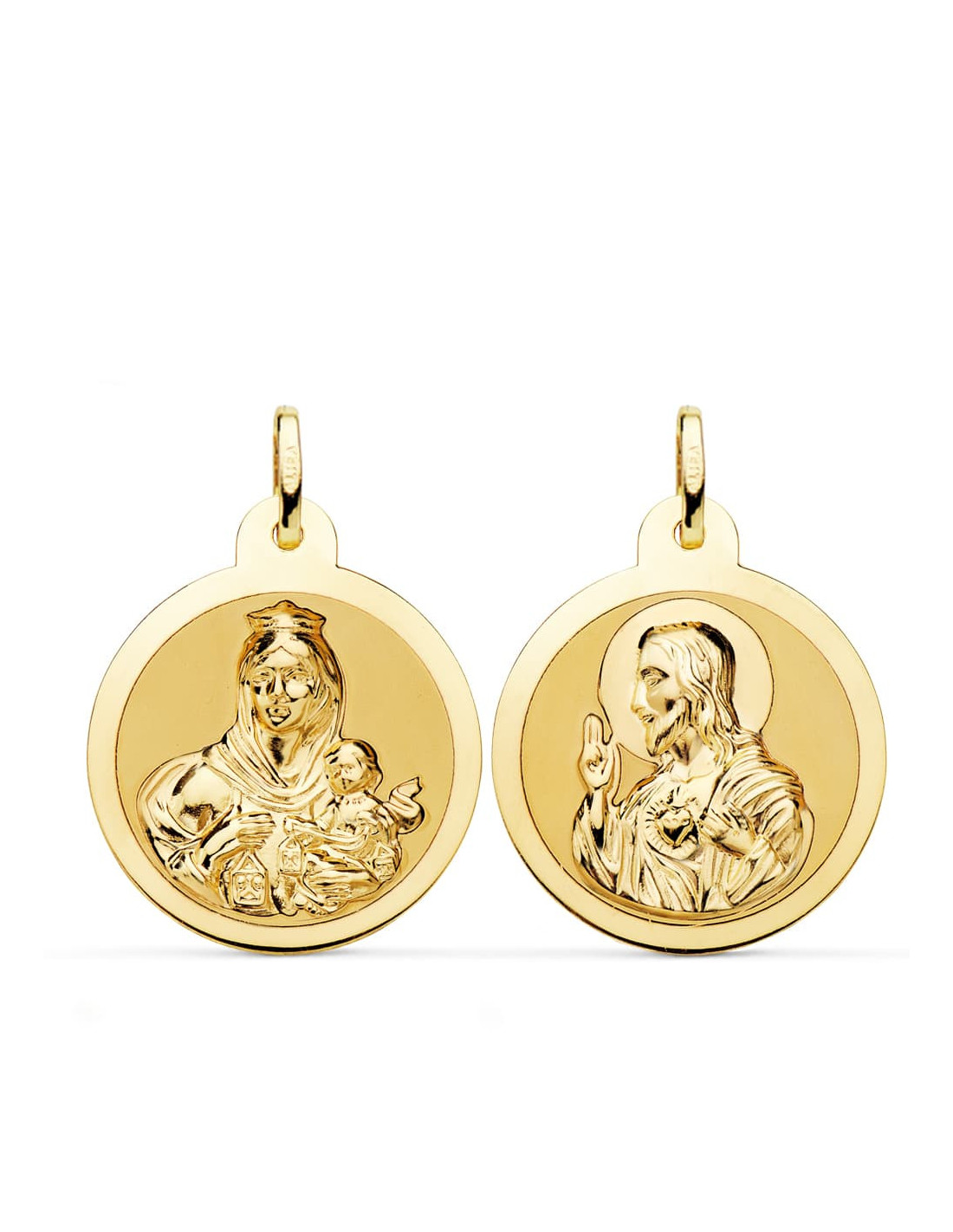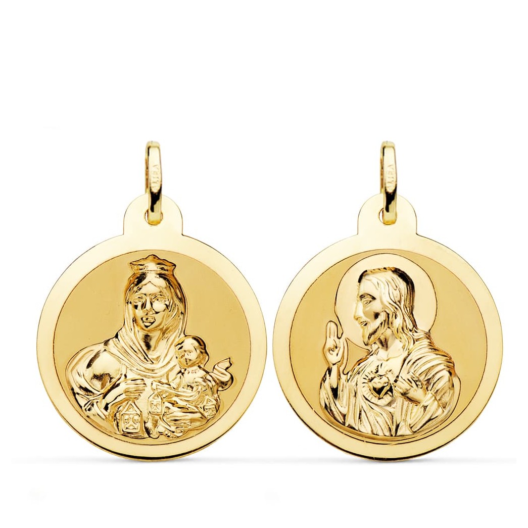 18K ESCAPULARIO BRILLO VIRGEN DEL CARMEN CORAZON JESUS 24 MM