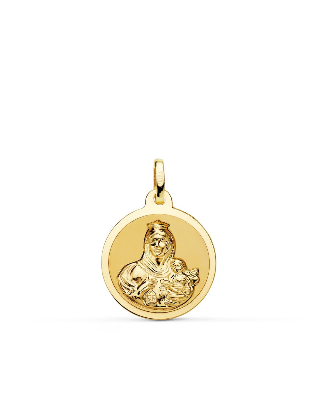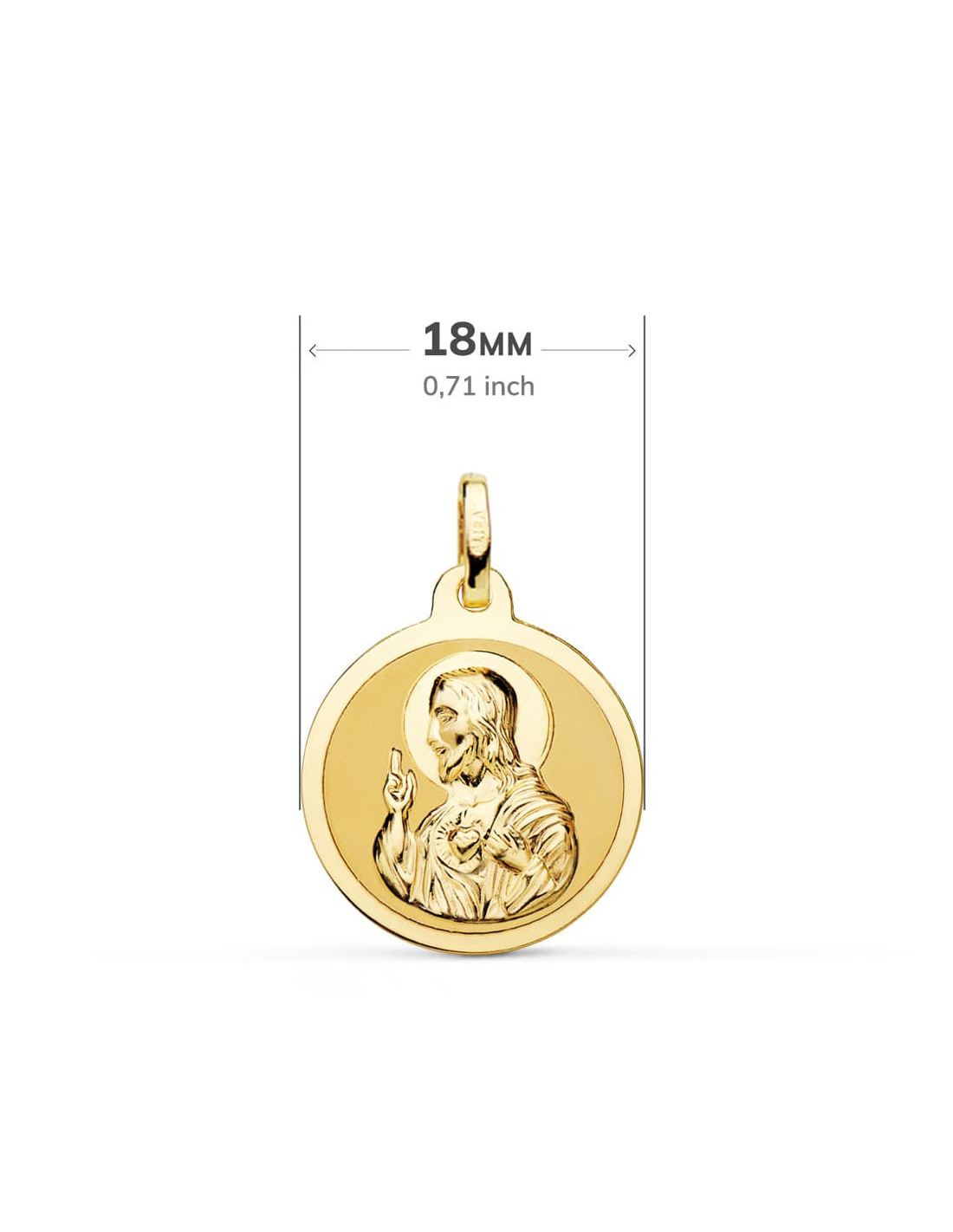 18K ESCAPULARIO BRILLO VIRGEN DEL CARMEN Y CORAZON DE JESUS 18 MM