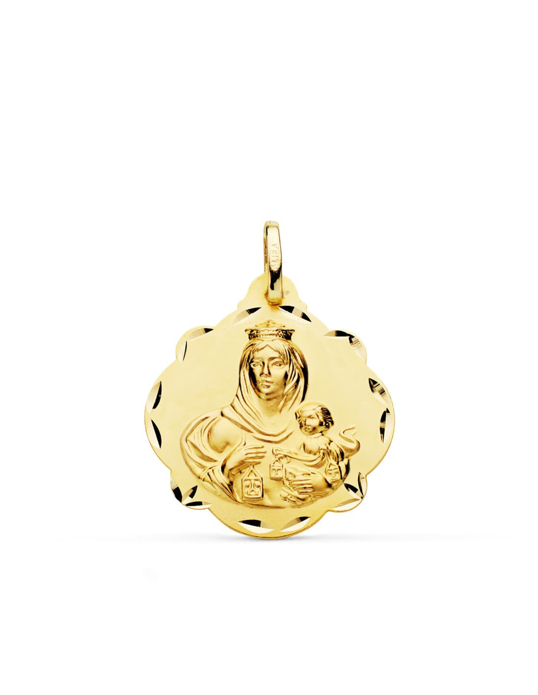 18K ESCAPULARIO VIRGEN DEL CARMEN Y CORAZON DE JESUS 24 MM