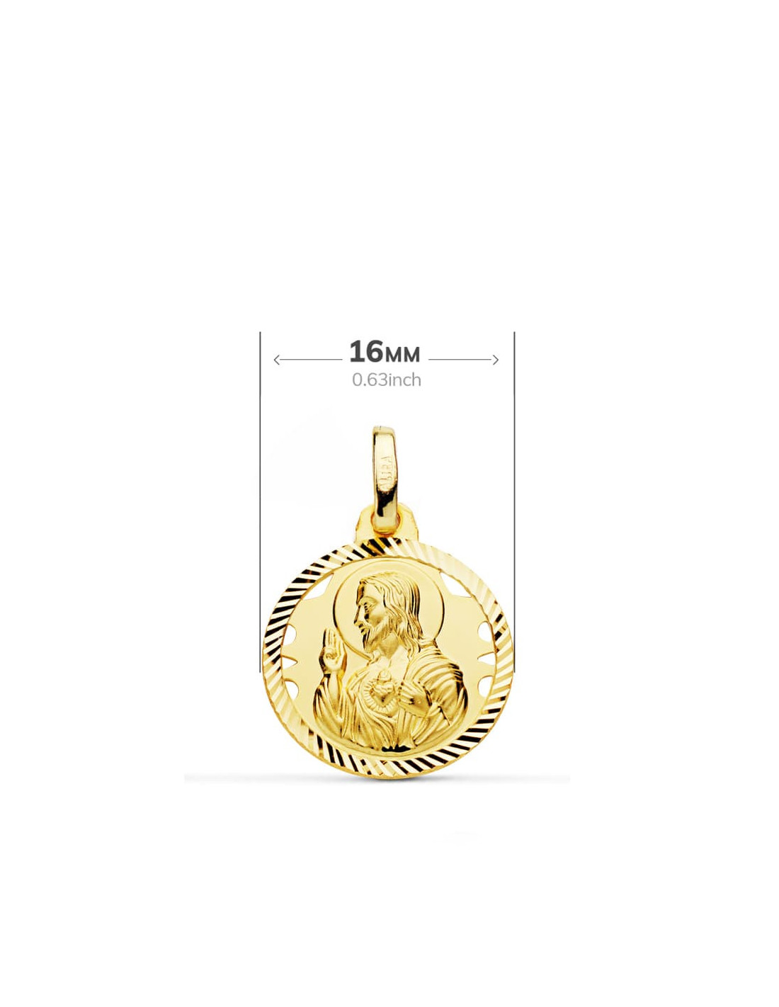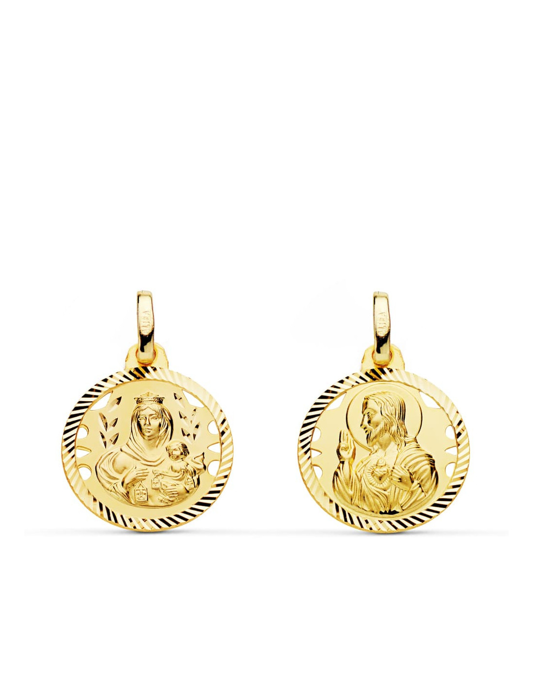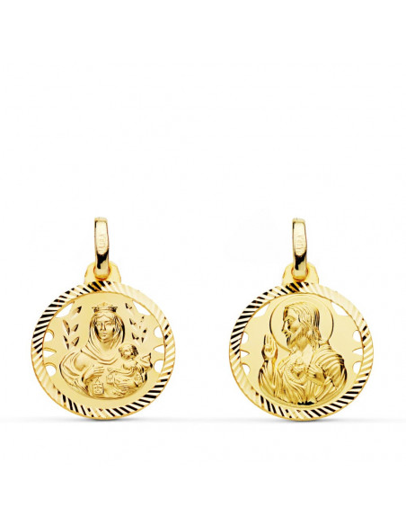 18K ESCAPULARIO HELICE CALADO VIRGEN CARMEN Y CORAZON DE JESUS 16 MM