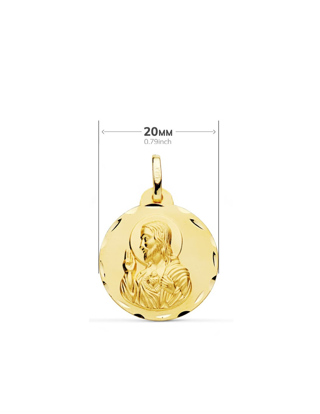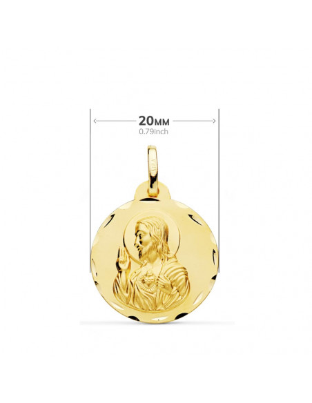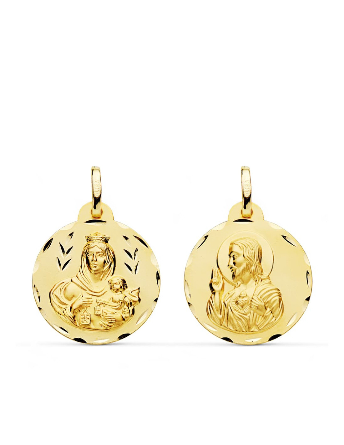 18K ESCAPULARIO TALLADO VIRGEN DEL CARMEN CORAZON DE JESUS 20 MM