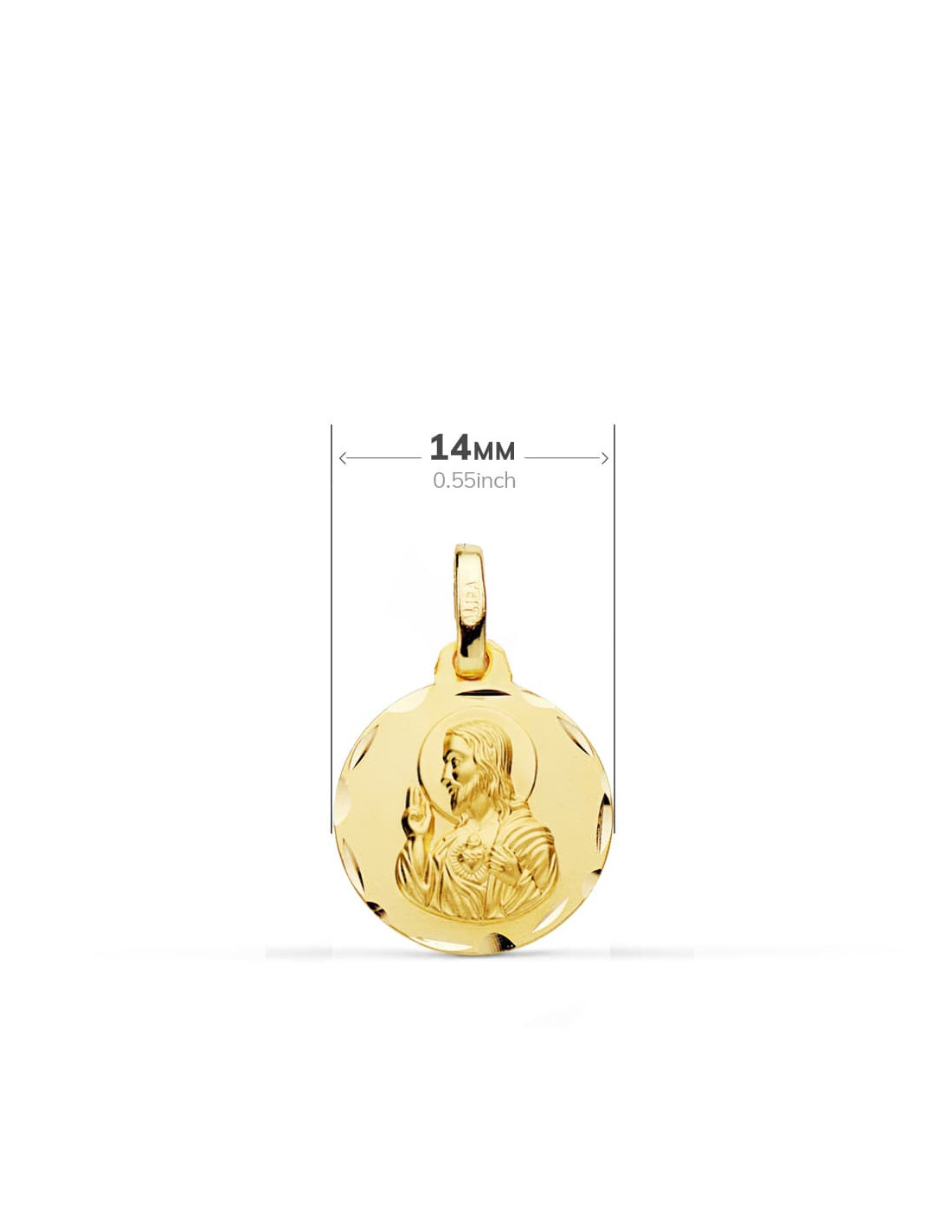 18K ESCAPULARIO TALLADO VIRGEN DEL CARMEN CORAZON DE JESUS 14 MM