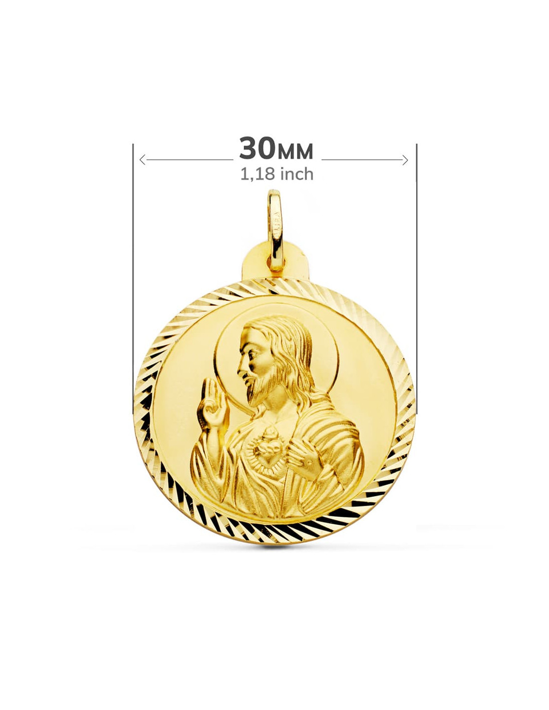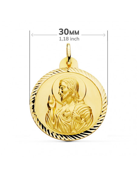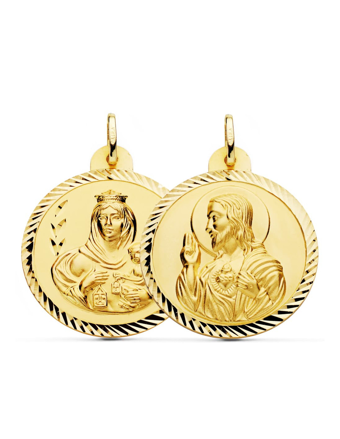 18K ESCAPULARIO HELICE VIRGEN CARMEN Y CORAZON DE JESUS 30 MM
