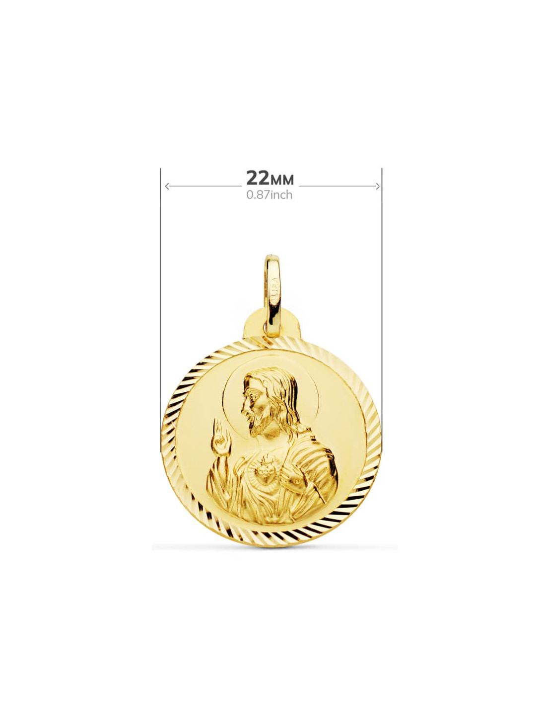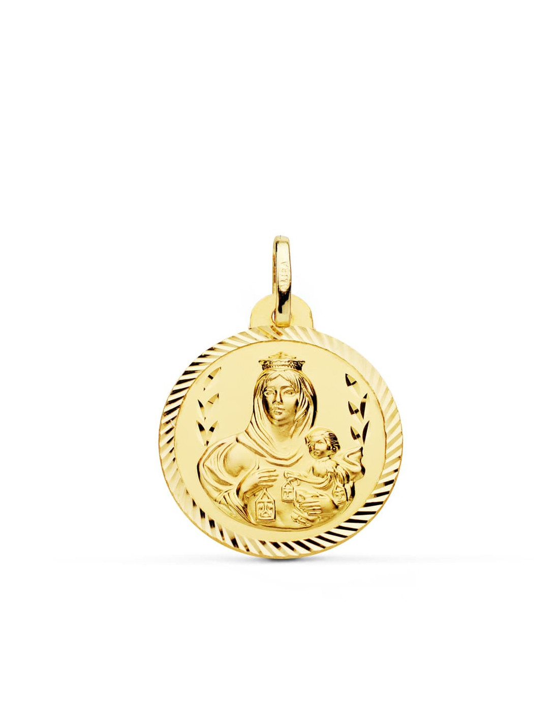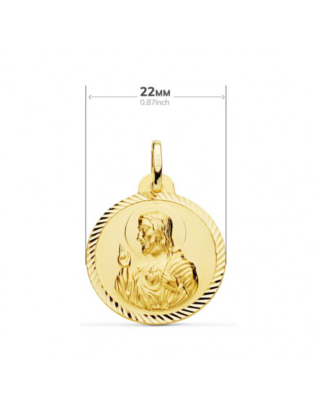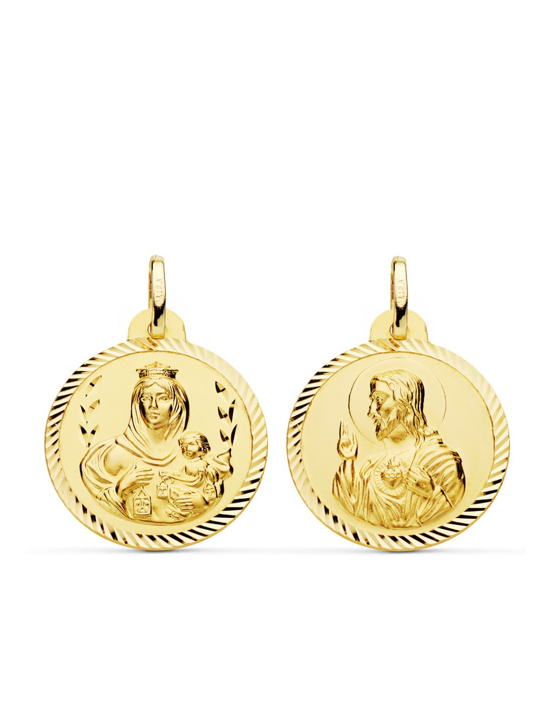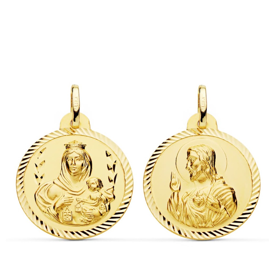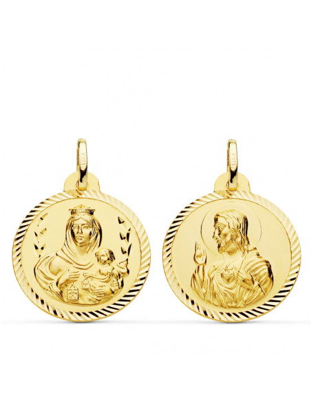 18K ESCAPULARIO HELICE VIRGEN DEL CARMEN Y CORAZON DE JESUS. 22 MM