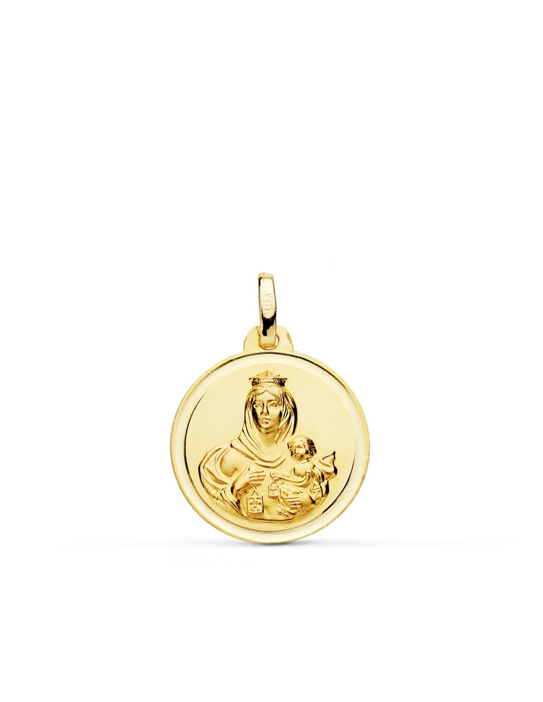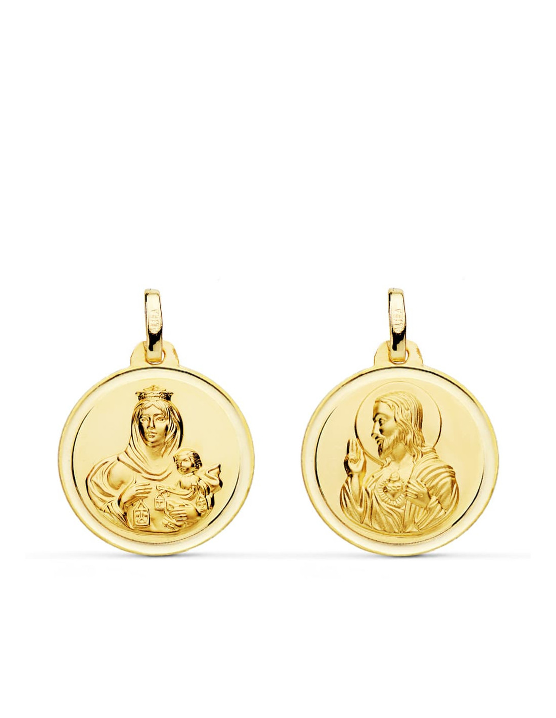 18K ESCAPULARIO BISEL VIRGEN DEL CARMEN CORAZON DE JESUS 18 MM