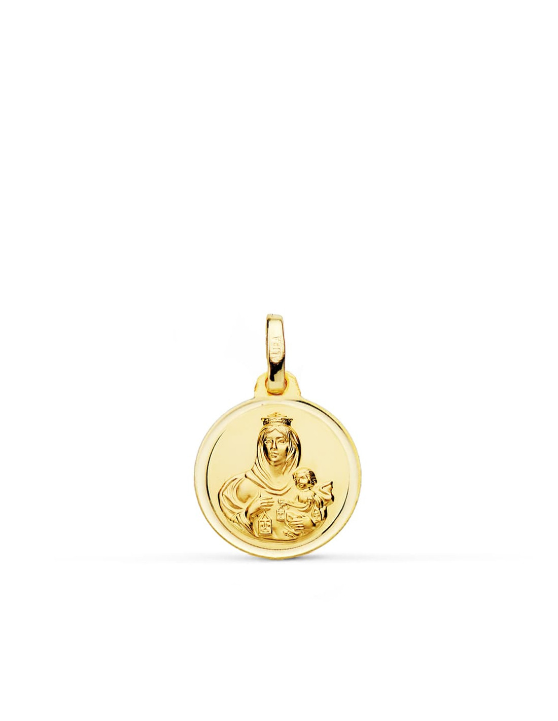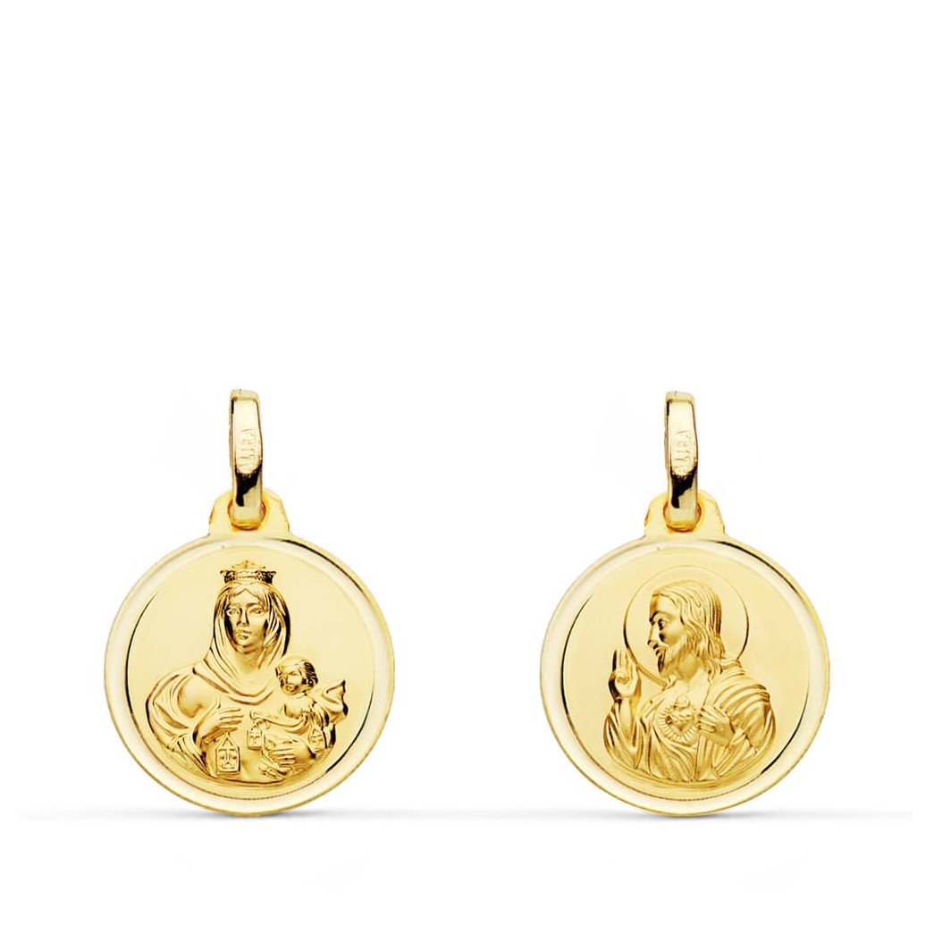 18K ESCAPULARIO BISEL VIRGEN DEL CARMEN CORAZON DE JESUS 14 MM