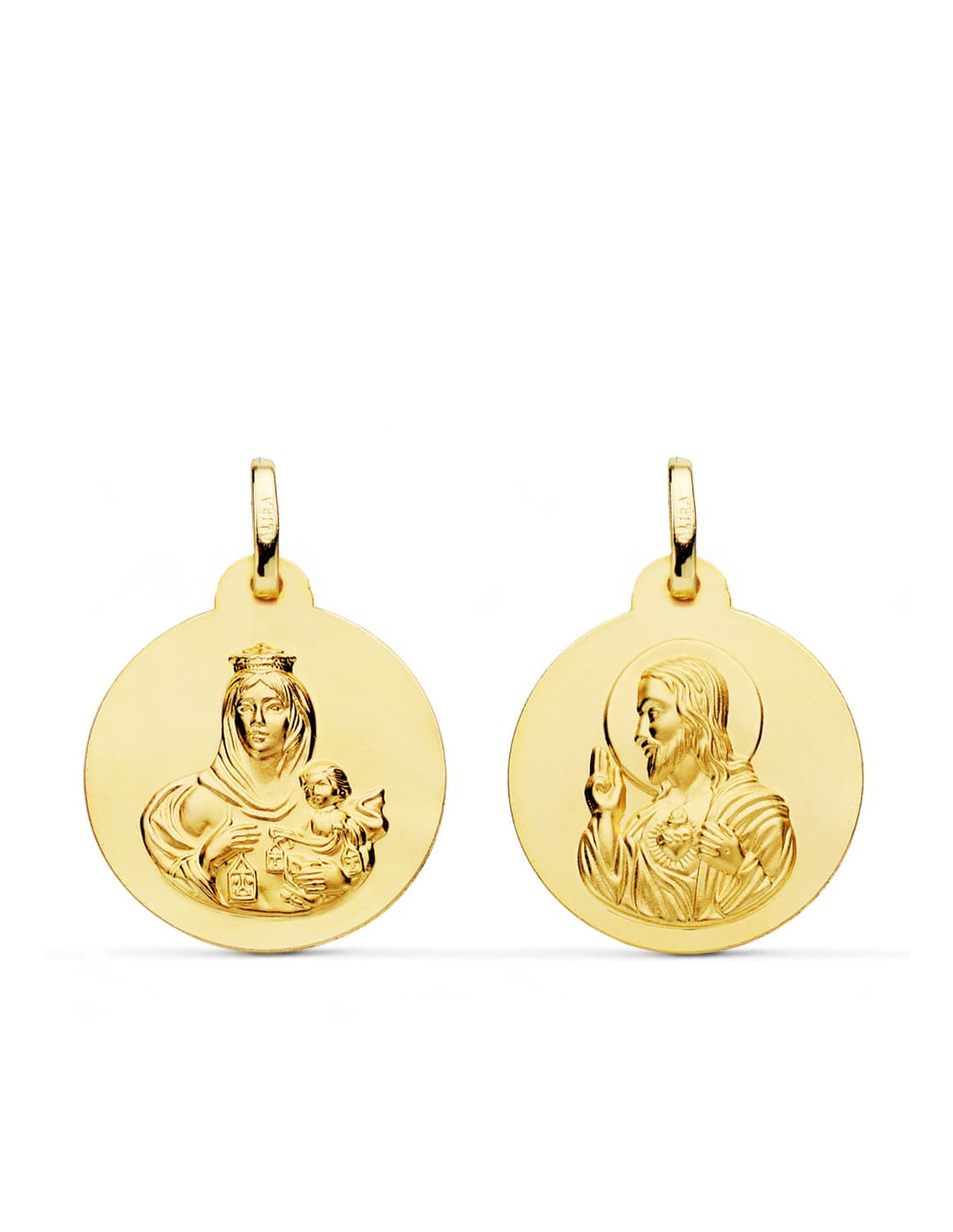 18K ESCAPULARIO LISO VIRGEN DEL CARMEN CORAZON DE JESUS 20 MM