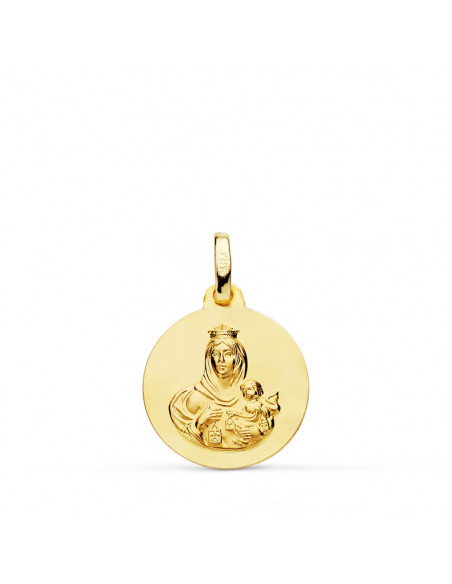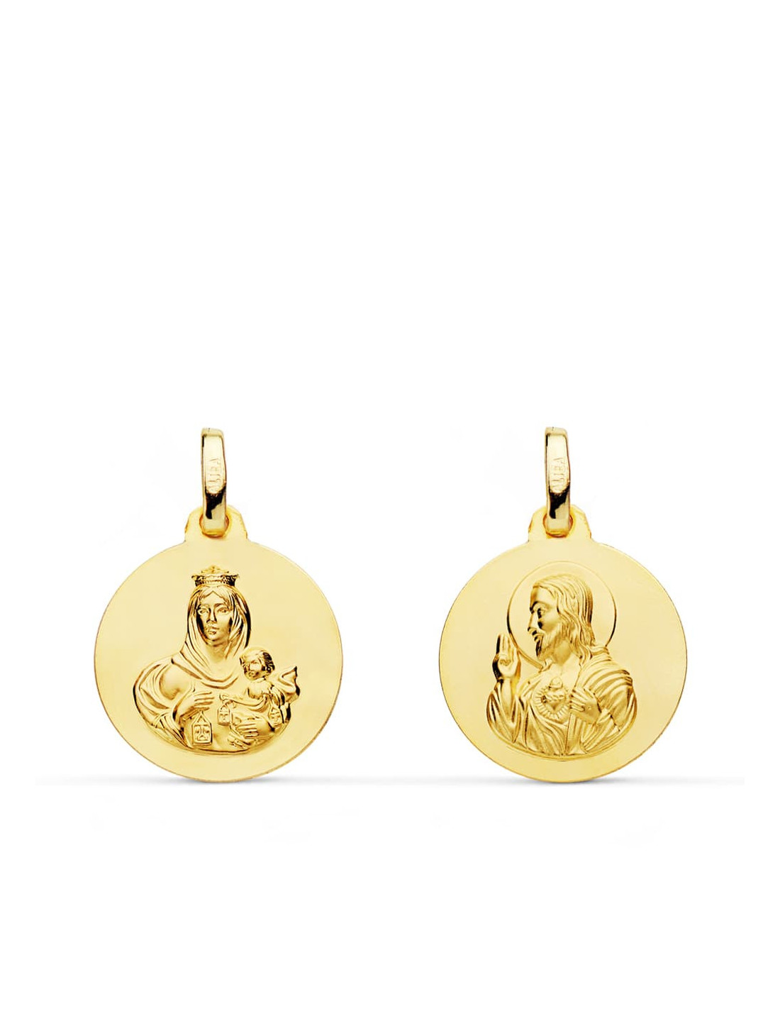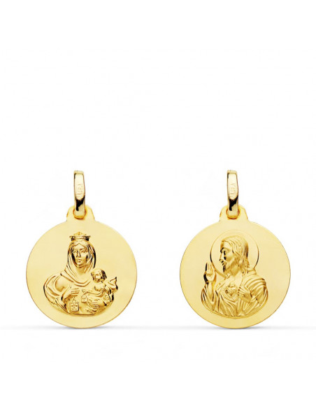 18K ESCAPULARIO LISO VIRGEN DEL CARMEN CORAZON DE JESUS 16 MM