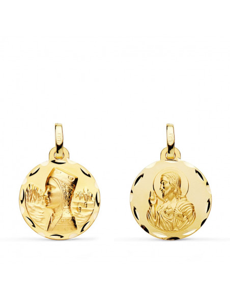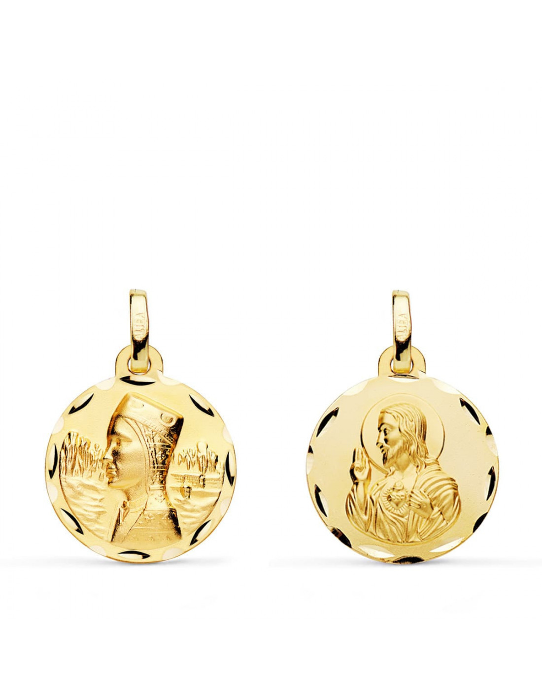 18K ESCAPULARIO VIRGEN MONTSERRAT Y CORAZON DE JESUS TALLADA 16 MM