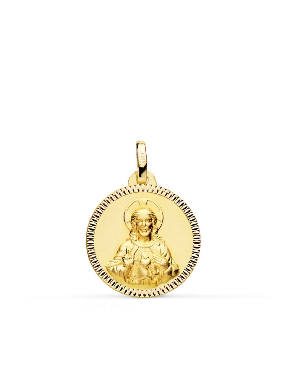 18K MEDALLA CRISTO SAGRADO CORAZON DE JESUS 18 MM