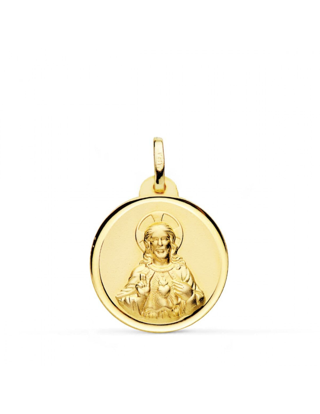 18K MEDALLA CRISTO SAGRADO CORAZON DE JESUS BISEL 20 MM