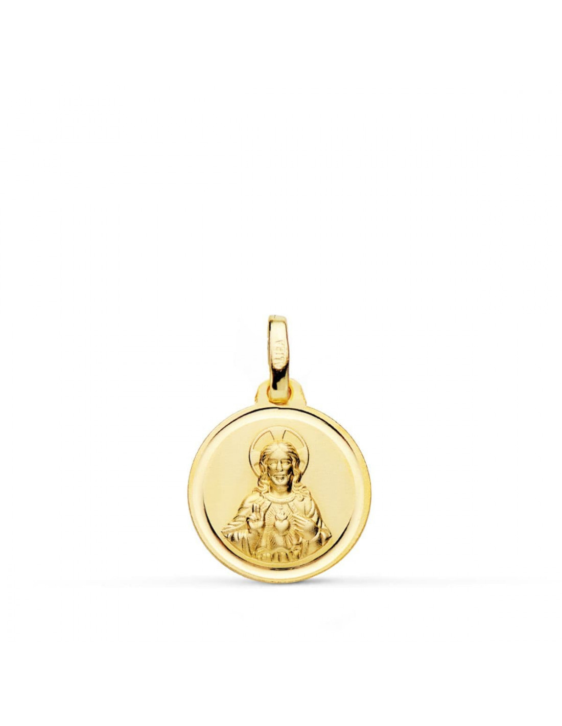 18K MEDALLA CRISTO SAGRADO CORAZON DE JESUS BISEL 14 MM