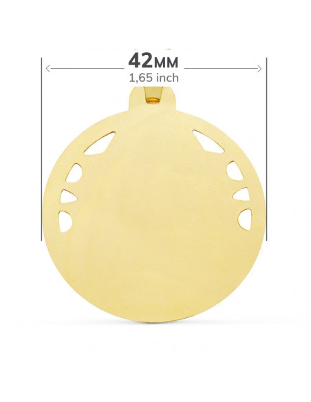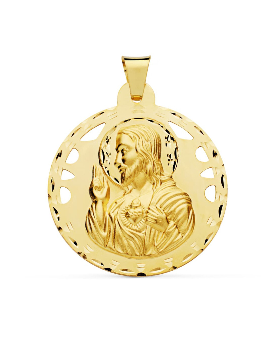 18K MEDALLA CRISTO SAGRADO CORAZON DE JESUS CALADO Y TALLADO 42 MM