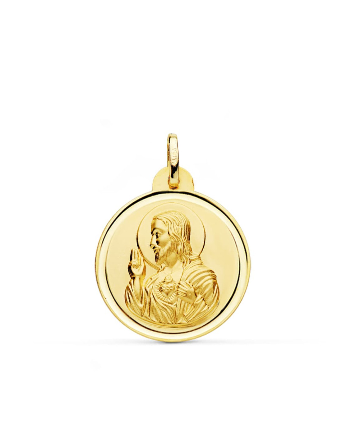 18K MEDALLA CRISTO SAGRADO CORAZON DE JESUS BISEL 24 MM