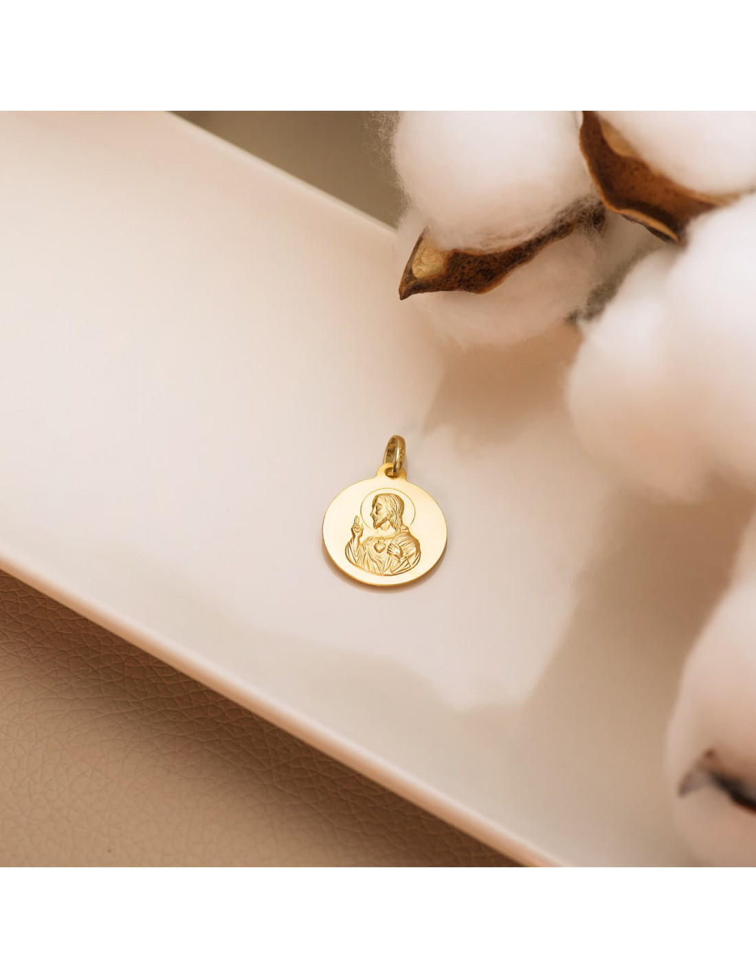 18K MEDALLA CRISTO SAGRADO CORAZON DE JESUS LISO 18 MM