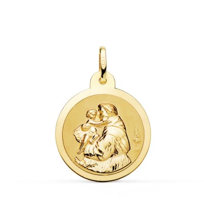 18K MEDALLA ORO AMARILLO SAN ANTONIO BRILLO 22 MM