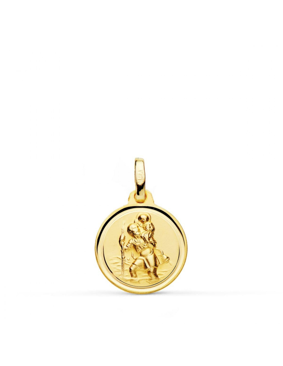 18K MEDALLA ORO AMARILLO SAN CRISTOBAL MATIZADO BISEL 14 MM