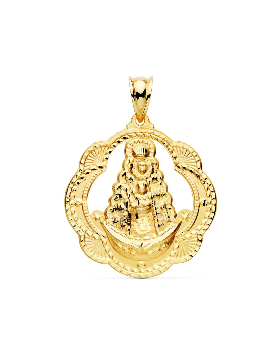 18K MEDALLA VIRGEN DEL ROCIO PANDERETA 35X33 MM