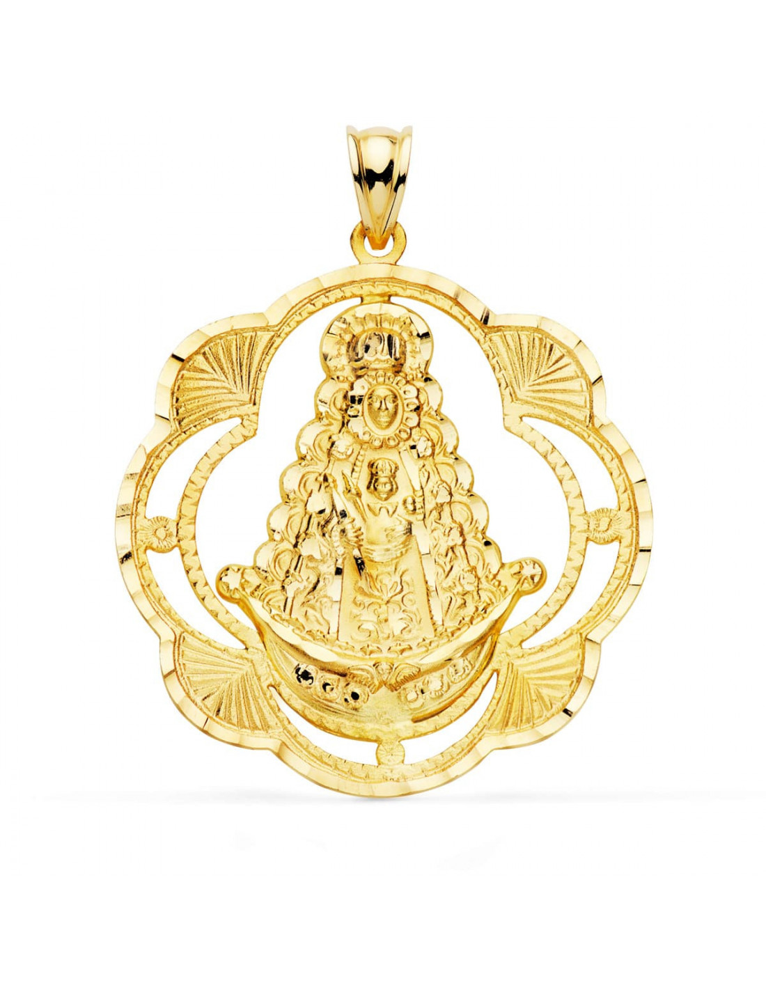 18K MEDALLA VIRGEN DEL ROCIO PANDERETA 38X34 MM