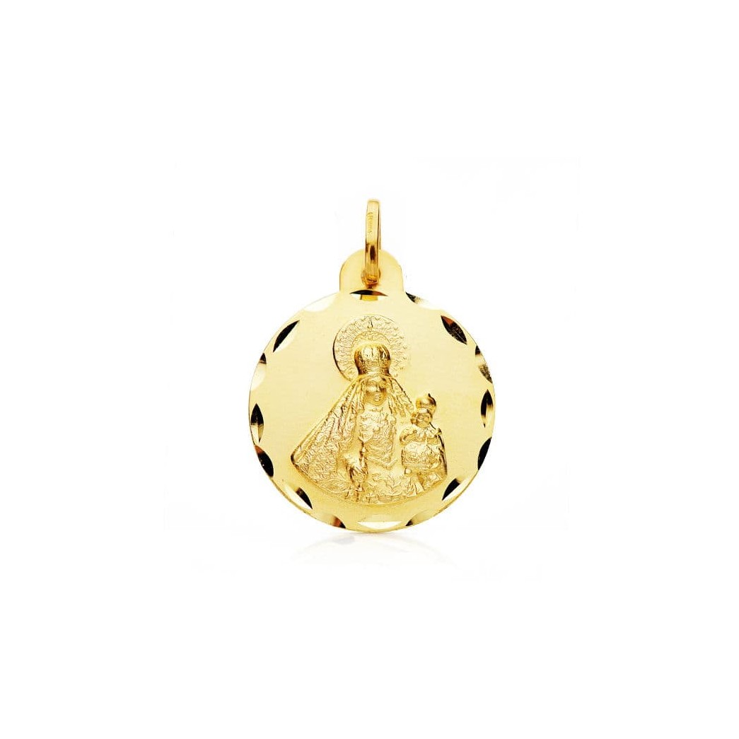 18K MEDALLA VIRGEN DEL ROSARIO TALLADA 22 MM