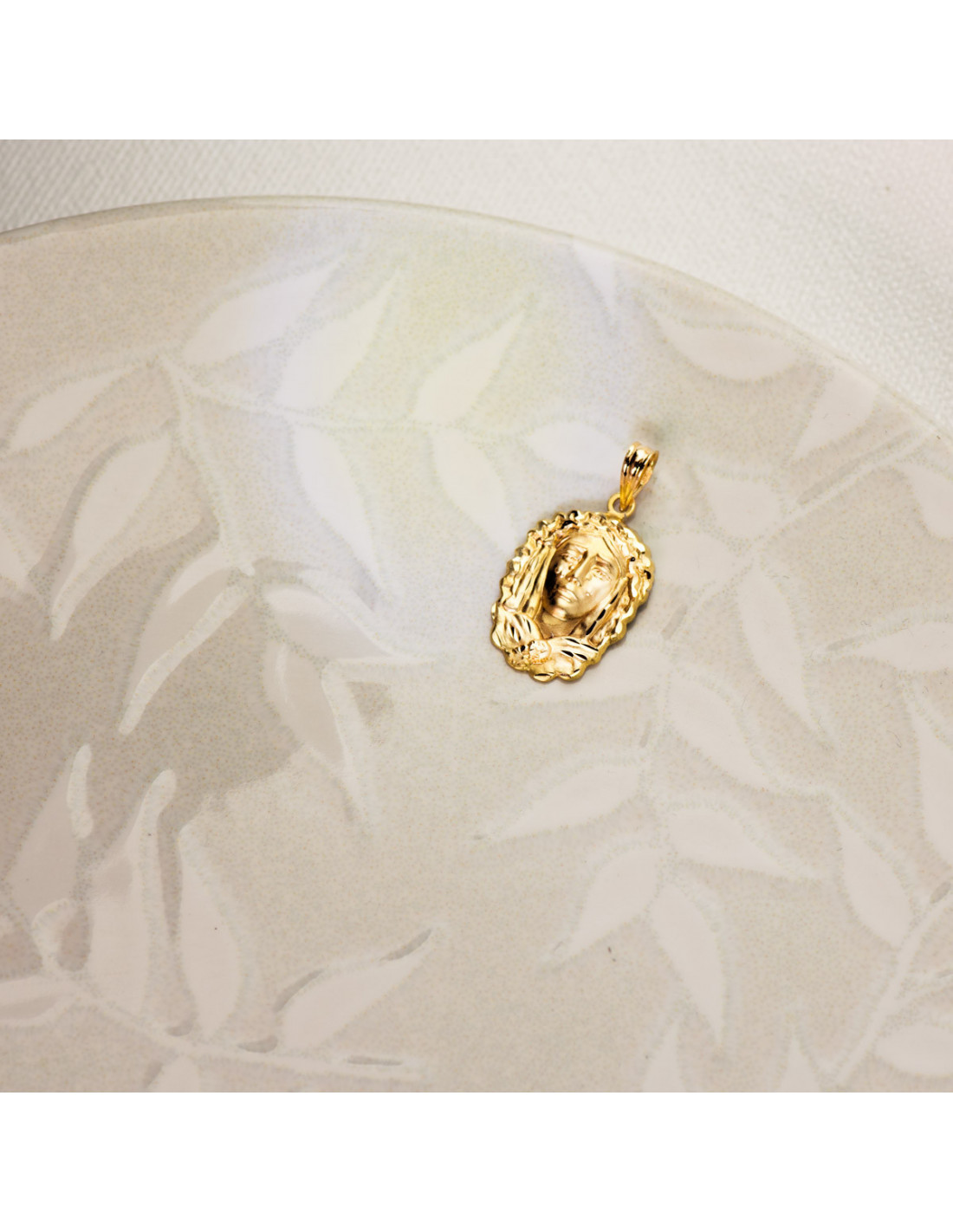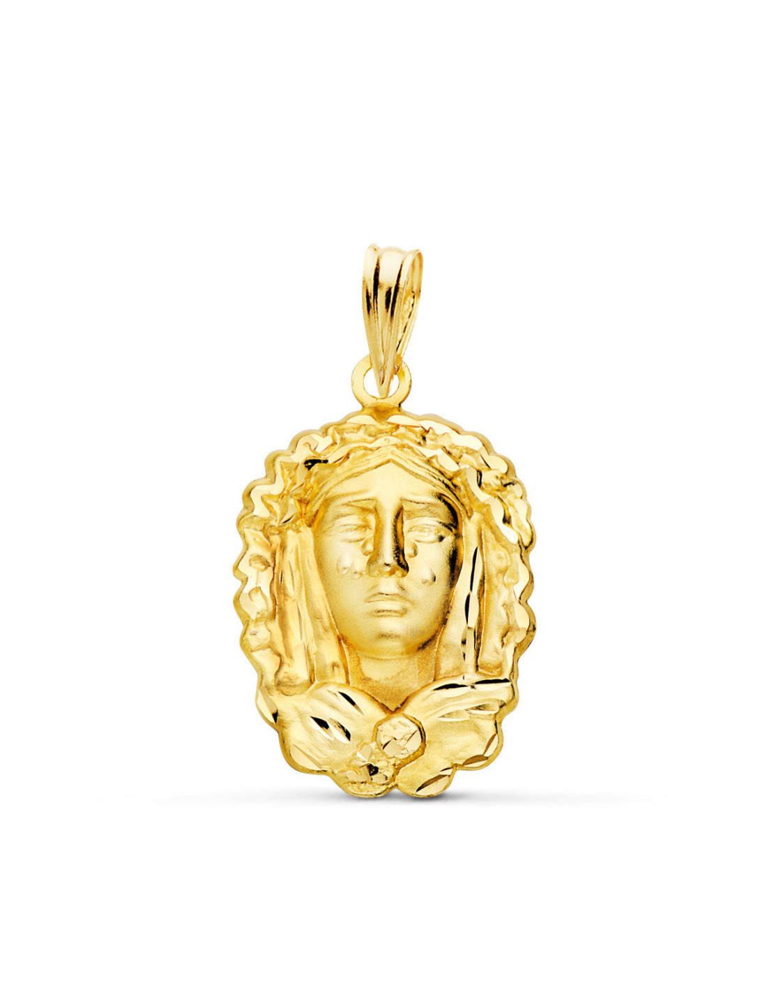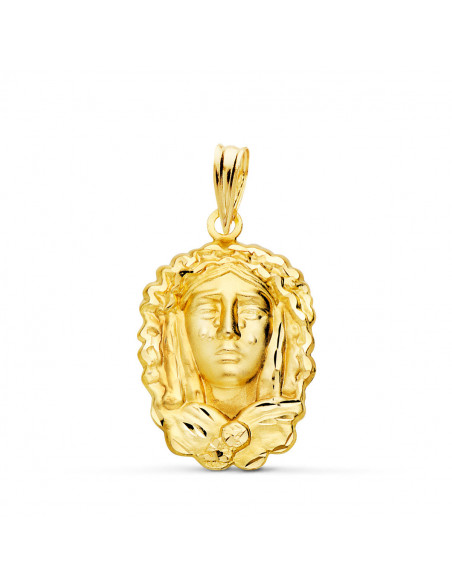 18K MEDALLA SILUETA VIRGEN MARIA DE LA O 22X15 MM TALLADA