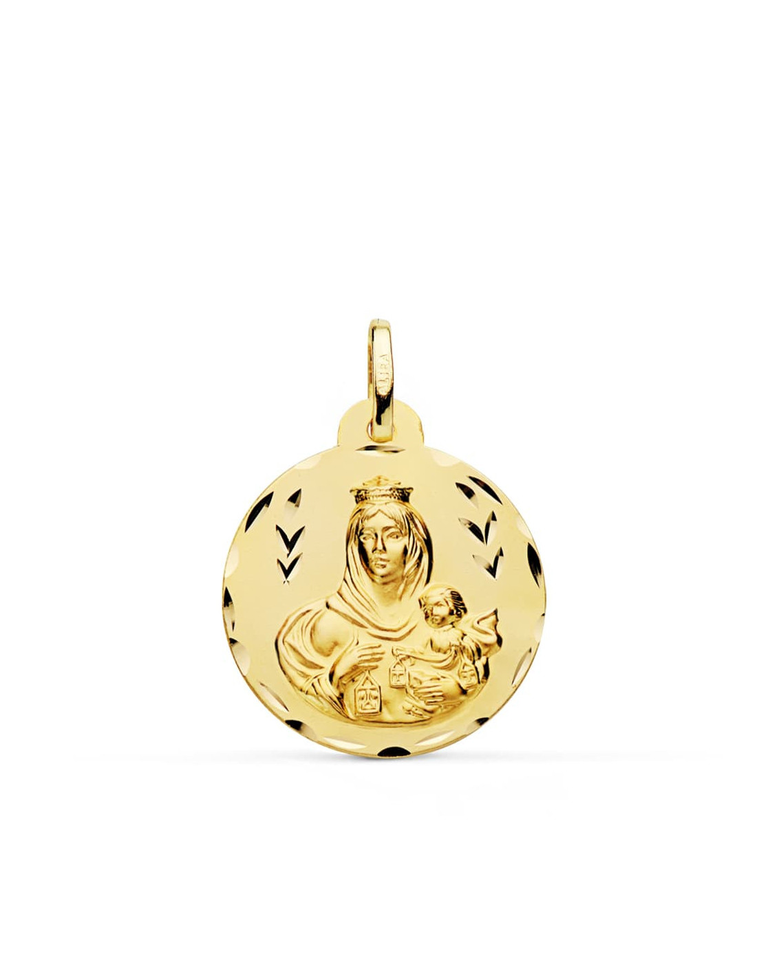 18K MEDALLA TALLADA VIRGEN DEL CARMEN 22 MM