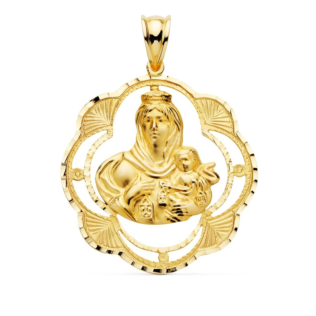 18K MEDALLA VIRGEN DEL CARMEN PANDERETA 32X28 MM