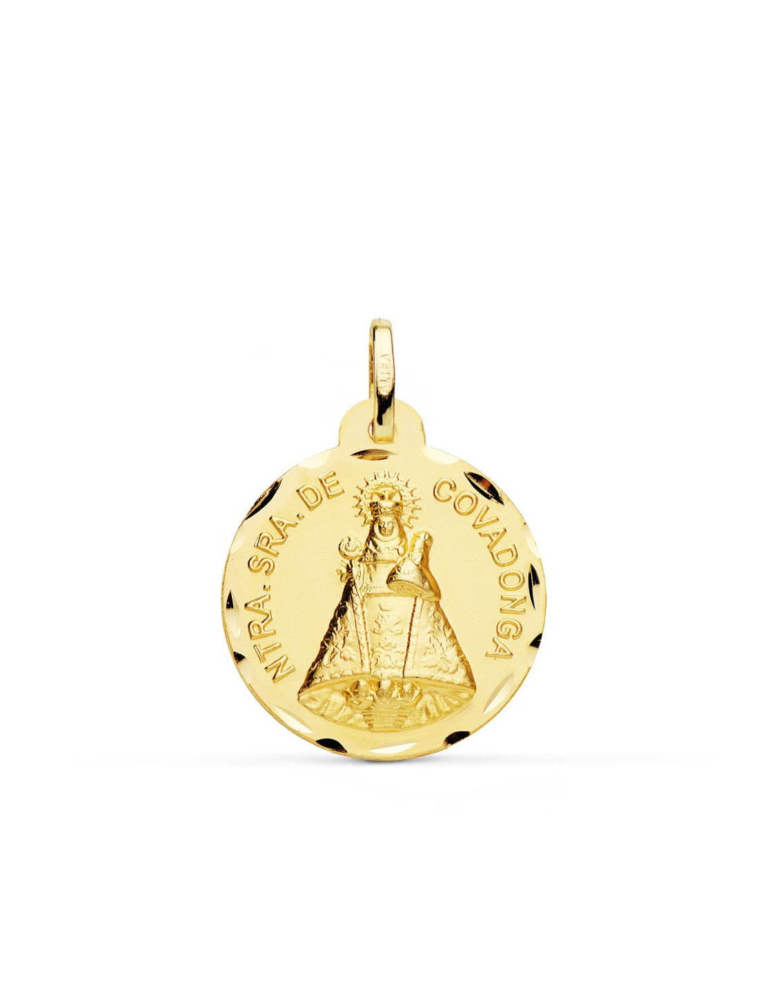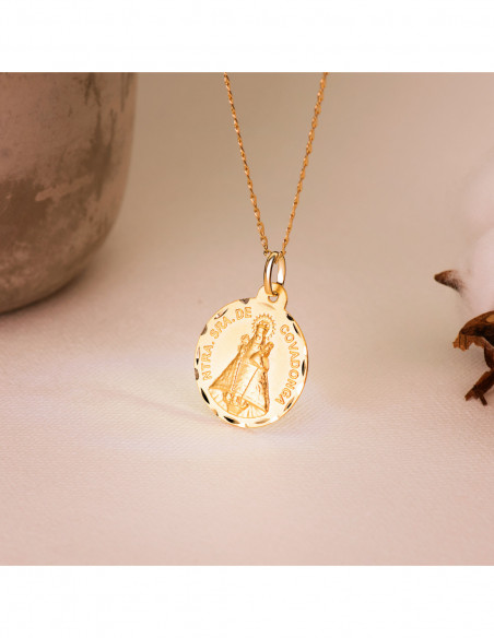 18K MEDALLA DE LA VIRGEN DE COVADONGA 22 MM TALLADA
