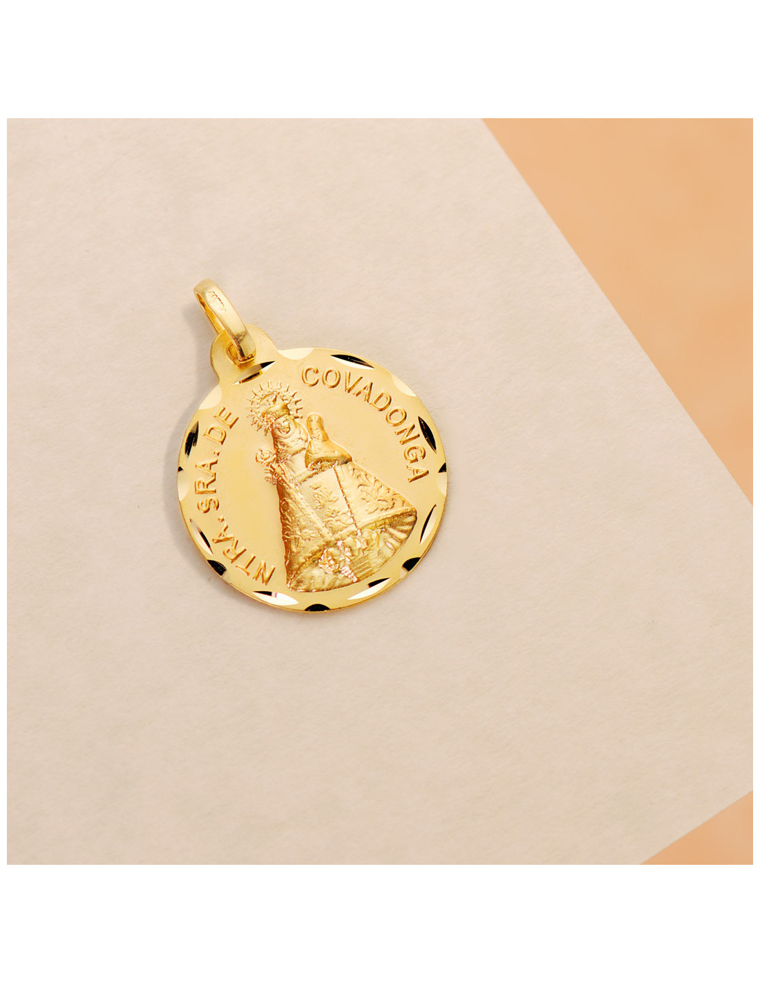 18K MEDALLA DE LA VIRGEN DE COVADONGA TALLADA 18 MM