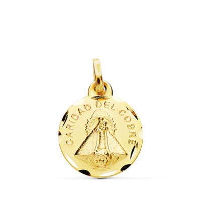 18K MEDALLA ORO AMARILLO VIRGEN DE LA CARIDAD DEL COBRE TALLADA 14 MM