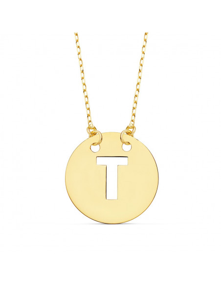 18K COLGANTE LETRA T 15 MM CADENA FORZADA 42 CM