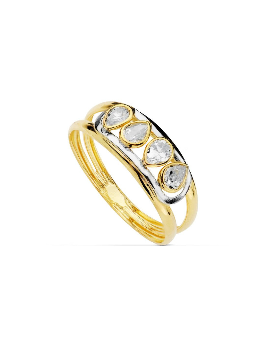 18K SORTIJA ORO BICOLOR PIEDRAS PERA