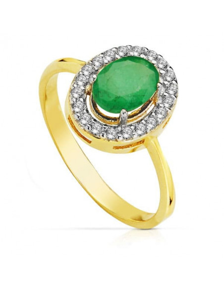 18K SORTIJA BICOLOR ESMERALDA 7X5 MM