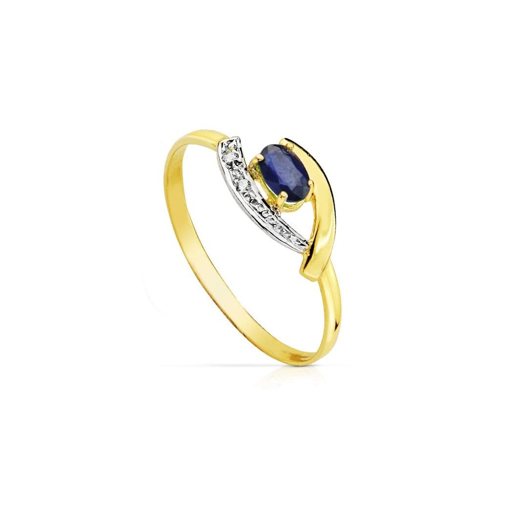 18K SORTIJA ORO BICOLOR ZAFIRO 5X3 MM