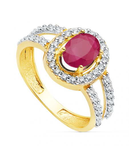 18K SORTIJA BICOLOR RUBI. 7X5 MM
