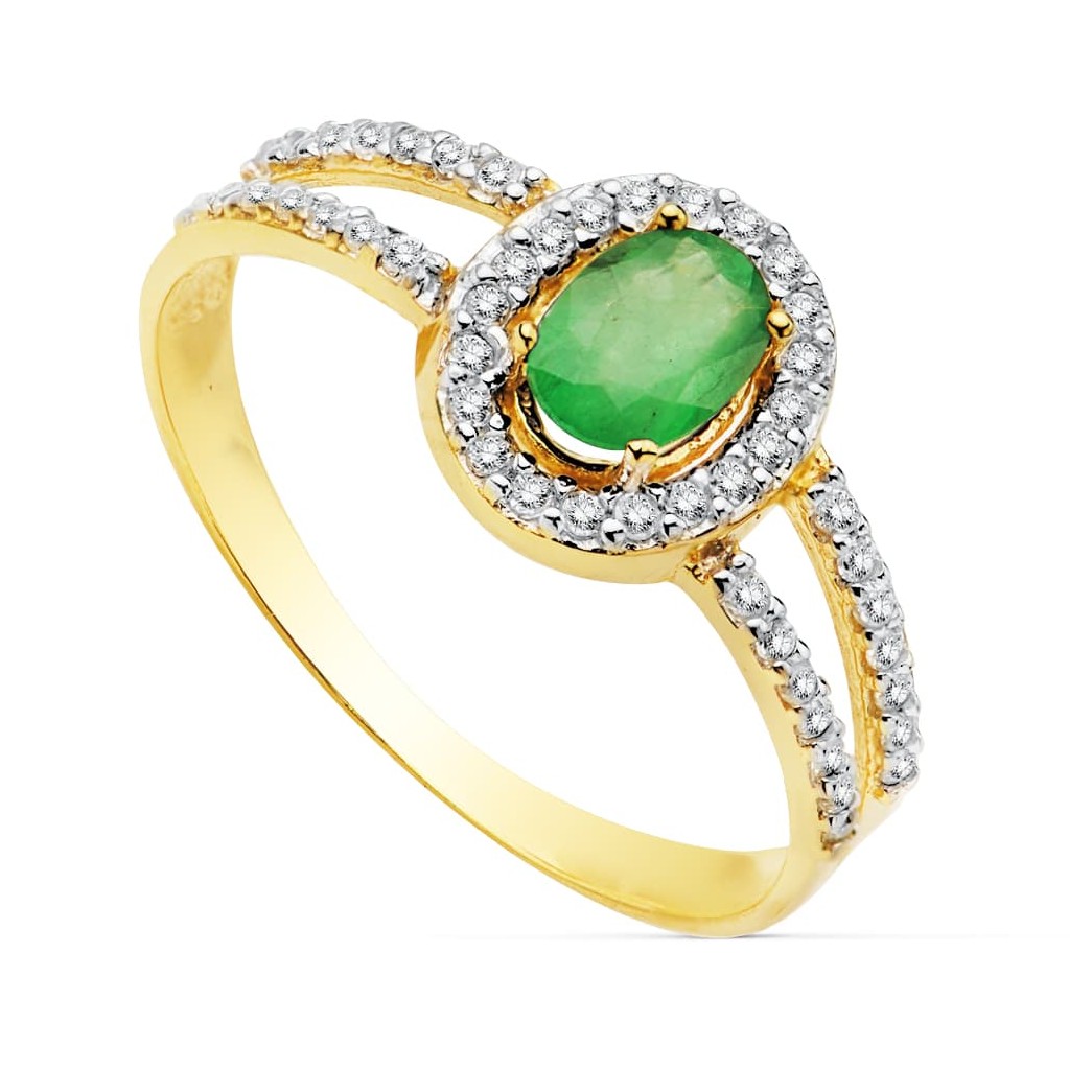 18K SORTIJA ORO BICOLOR ESMERALDA 6X4 MM