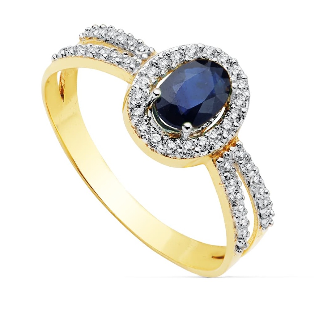 18K SORTIJA BICOLOR ZAFIRO 6X4 MM