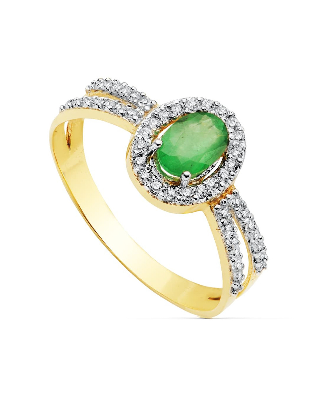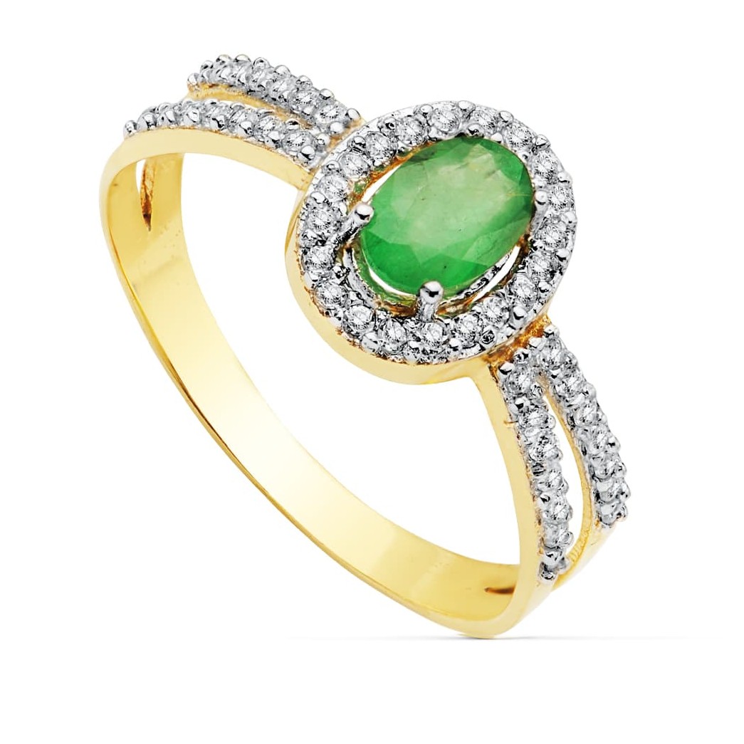 18K SORTIJA BICOLOR ESMERALDA 6X4 MM