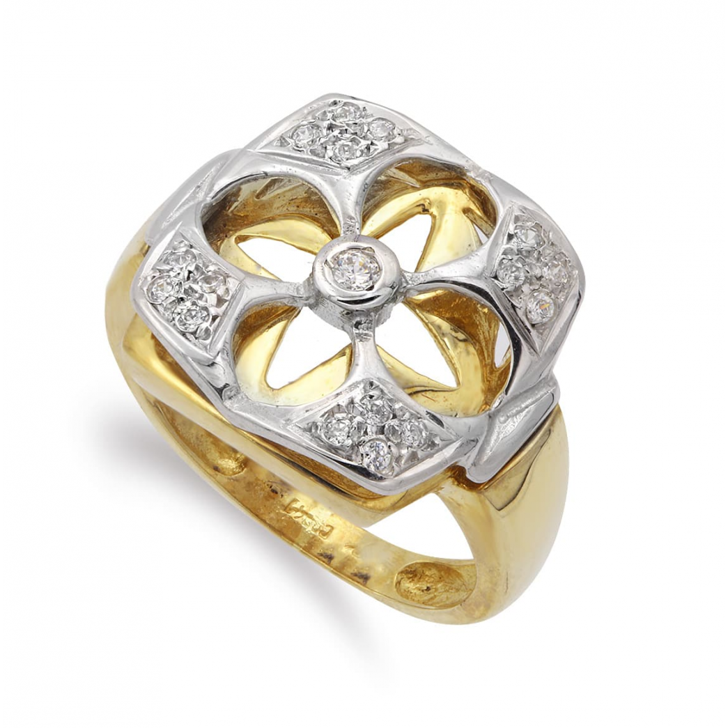 18K SORTIJA ORO BICOLOR DETALLE FLOR CON CIRCONITAS