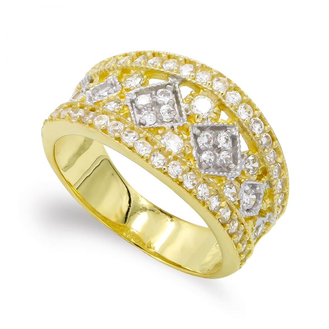 18K SORTIJA ORO BICOLOR Y CIRCONITAS CALADA